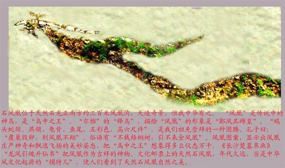 图为黄龙泉附近凤凰沟中的天然石凤凰: